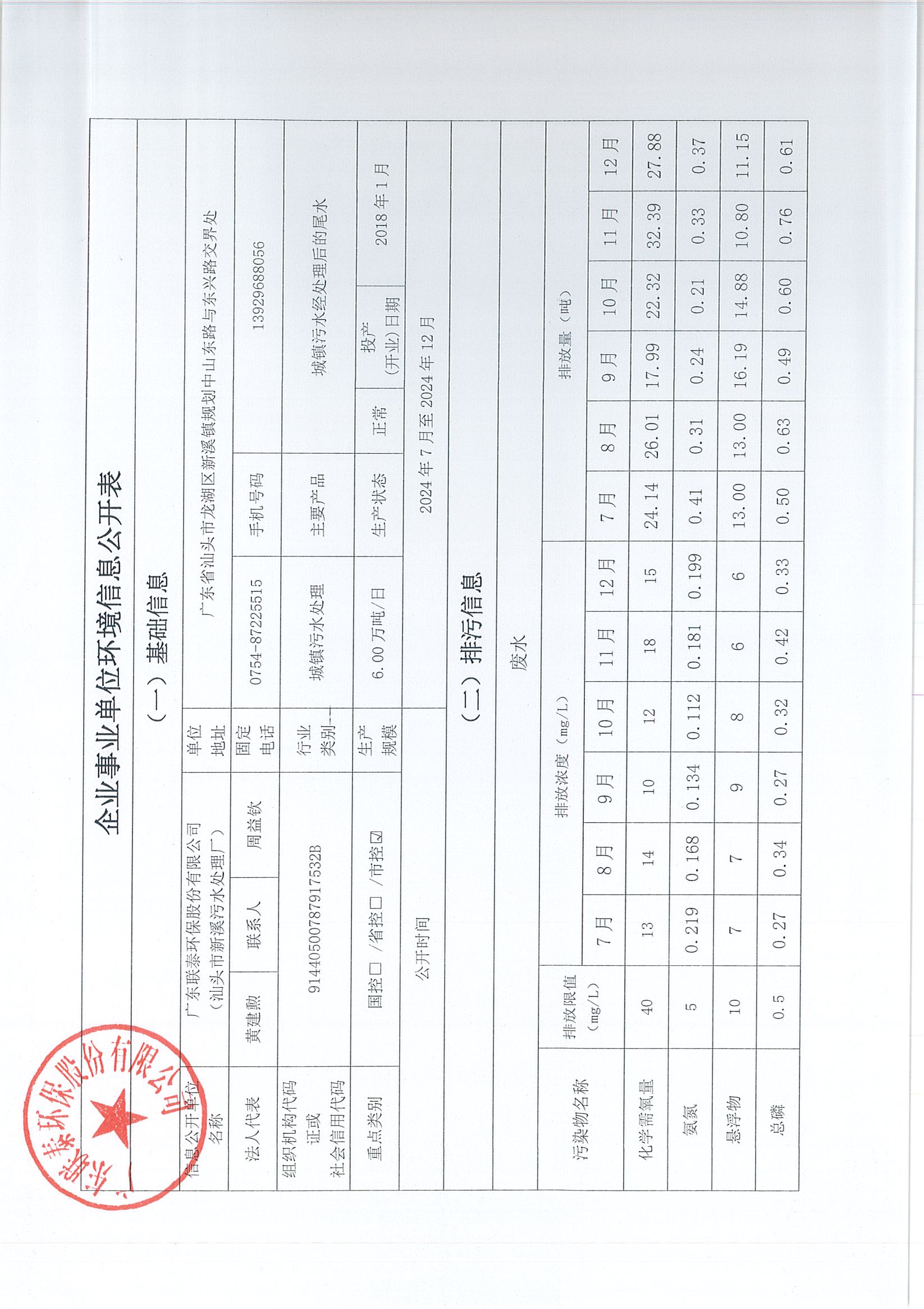 廣東聯泰環保股份有限公司(新溪污水處理廠)