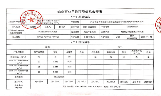 企業事業單位環境信息公開表(新溪污水處理廠)